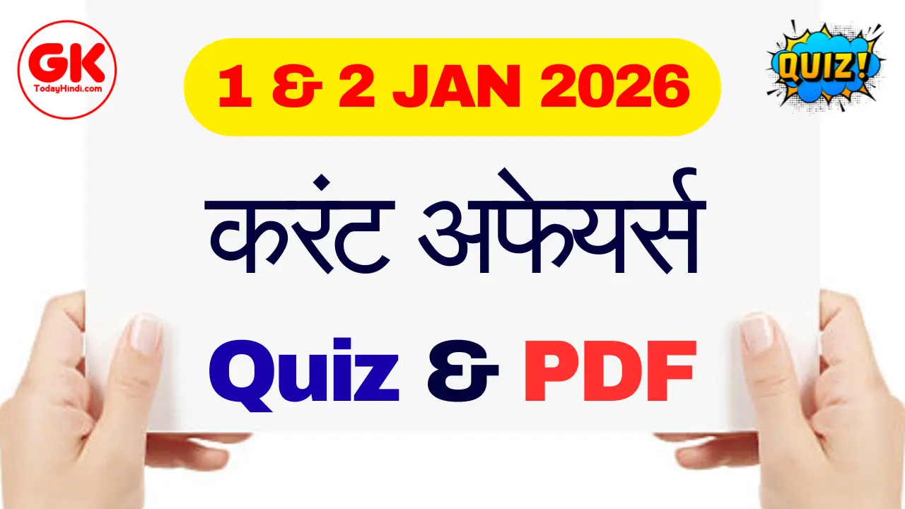 1 & 2 जनवरी 2026 Current Affairs Quiz in Hindi: महत्वपूर्ण GK Questions