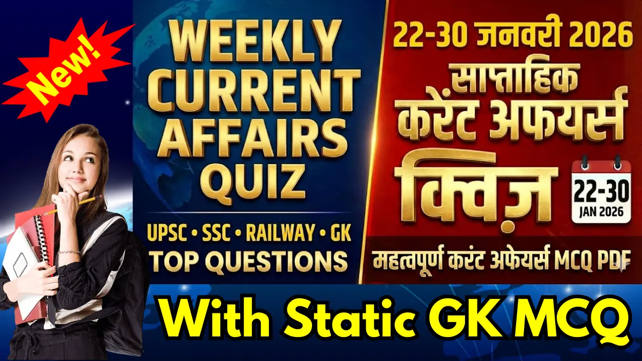 Competitive exams की preparation में Weekly Current Affairs Quiz एक highly effective revision tool माना जाता है। Daily current affairs पढ़ने के बावजूद अगर weekly revision नहीं किया जाए, तो important events और facts लंबे समय तक याद नहीं रह पाते। इसी reason से 22 to 30 January 2026 Weekly Current Affairs Quiz तैयार किया गया है, ताकि aspirants पूरे सप्ताह की current affairs को एक structured तरीके से revise कर सकें।